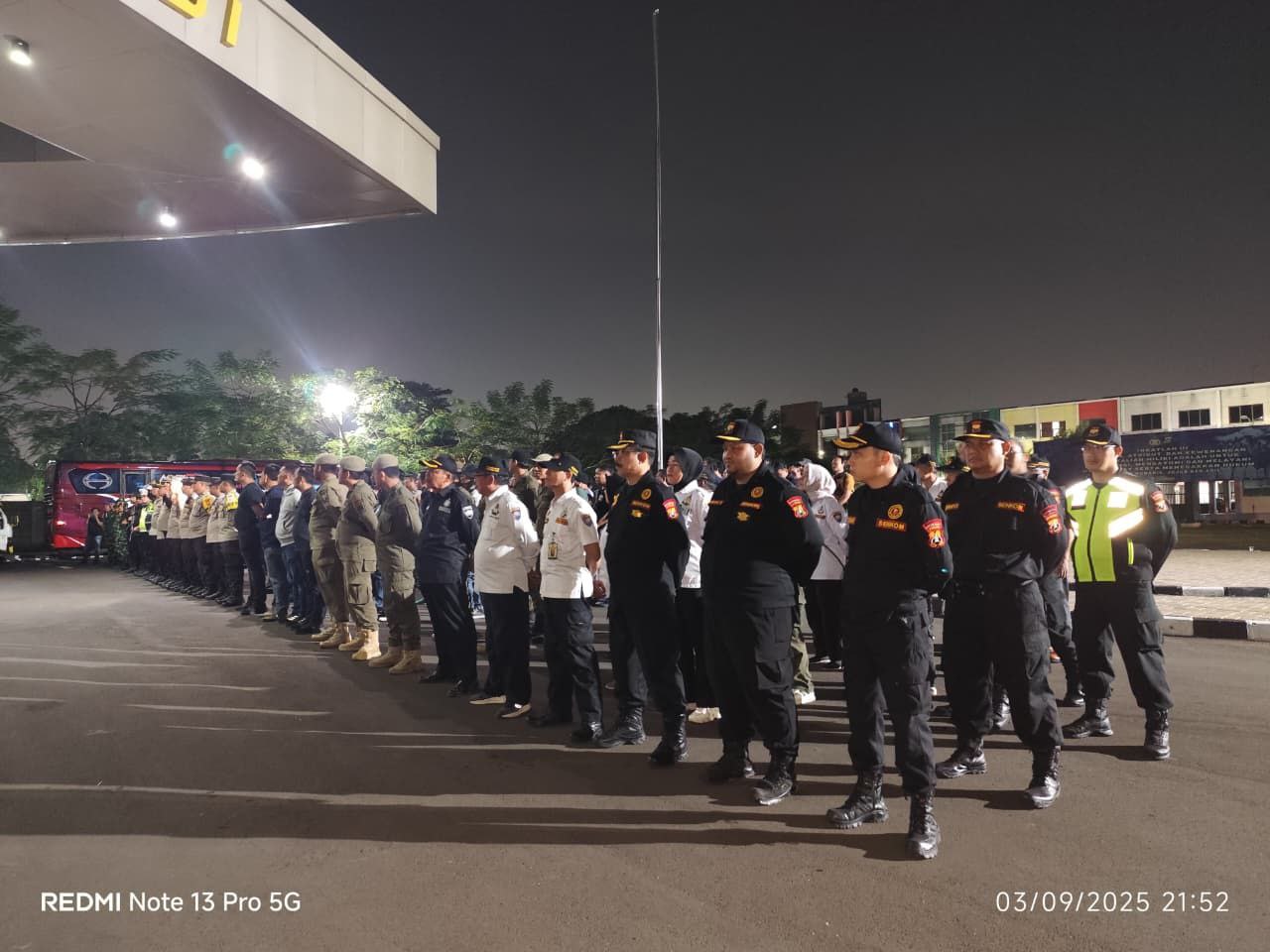 Hadir pula personil gabungan dari unsur TNI dan Polri sebanyak 88 personel, Satpol PP sebanyak 10 personel, Senkom Mitra Polri 8 personel, Pokdar 15 personel dan total personel gabungan sebanyak 131 personel.