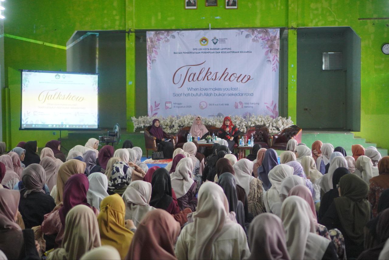 Bandar Lampung (31/10). DPD LDII Kota Bandar Lampung sukses menggelar talkshow inspiratif bertajuk “When Love Makes You Lost: Saat Hati Butuh Allah, Bukan Sekadar Rasa” pada Minggu (31/8) di Gedung Serba Guna (GSG) PC LDII Tanjung Senang.
